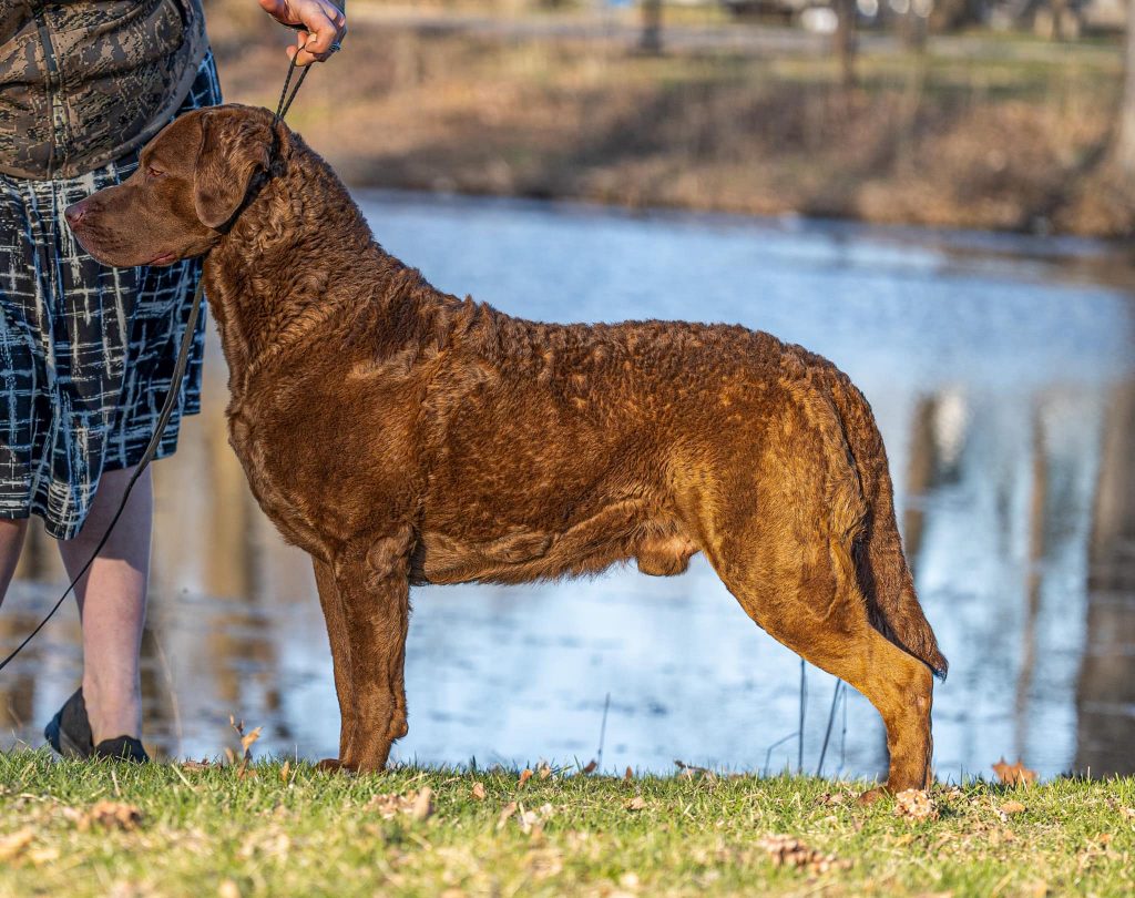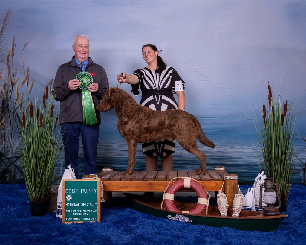 The overall winner and best of breed was a dog who has blazed a trail in the show arena – MBIS MNBISS MBISS GCHP Next Generations Accelerate (aka Cota) has dominated the show ring all year, not only in Chesapeakes but in all sporting breeds and is currently America’s number one sporting dog. This is quite a record for a Chesapeake, especially when you think he is up against all gundog breeds, many of them far flashier than our brown dogs.