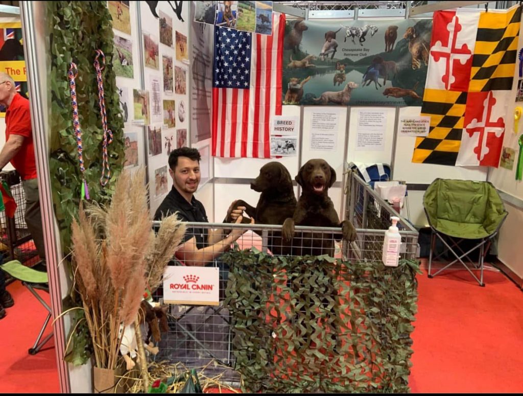 The Discover Dogs team is basically there to show the general public our breed and answer any questions they may have regarding owning or getting a Chesapeake. Debbie provides all information and the stand will be set up by Sharon on the first day, with literature about the breed and photos (as mentioned above). The dogs need to be confident with people and other dogs as the hall gets very busy and people always want to touch and fuss the dogs. It can also get quite noisy with activities going on in nearby rings so it is not a job for an apprehensive dog. Photos need to be of a good quality.
