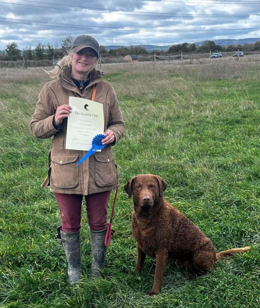 Our first target has been achieved for the first time under IKC rules a Chessie has won a Field trial Award in actual competition. I acknowledge all those wonderful dogs and handlers that have come before Cara and I and have won field trial awards under RKC (UK) rules. … They are the dogs and owners that have inspired me many, many times when I was ready to throw in the towel at trials.