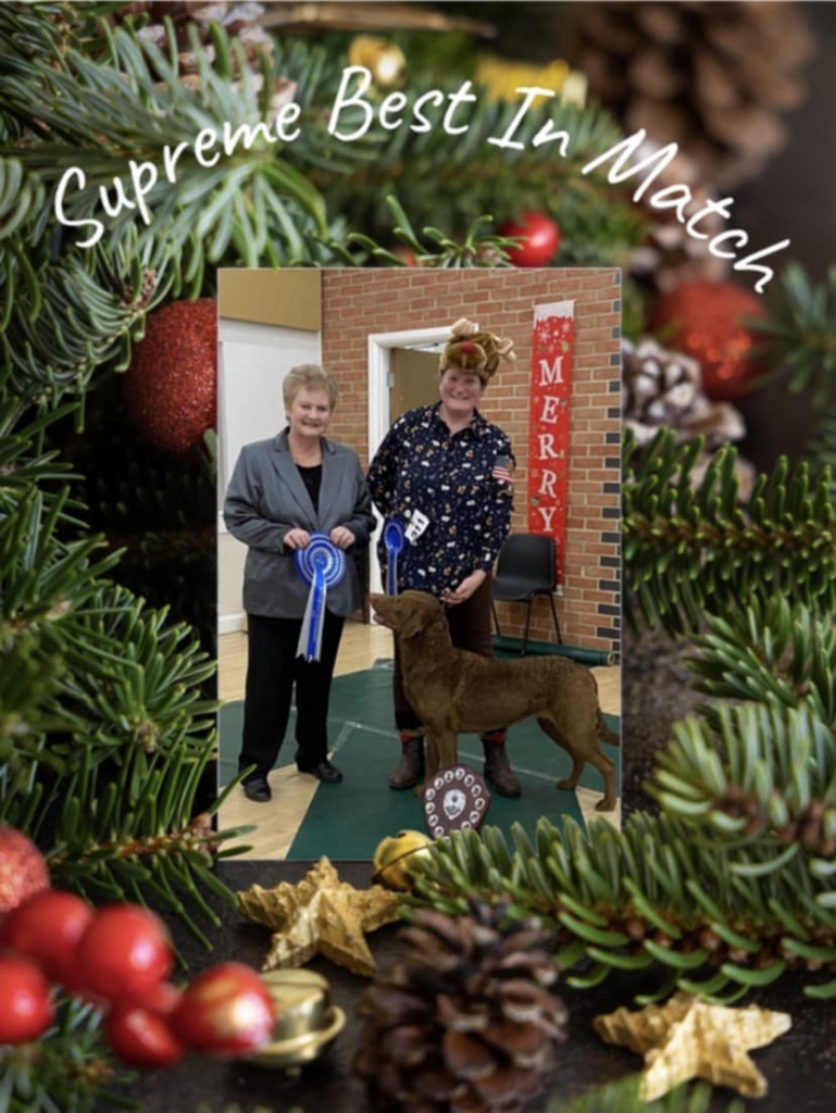 Meanwhile in the USA, our own UK judge, Frank Kane was judging Chesapeakes at the American Kennel Club’s National Championships, this time held in Orlando, Florida. Frank awarded best of breed to the USA’s number one sporting dog for the year, the multiple best in show winning Chesapeake GCHP Next Generations Accelerate, aka Cota.