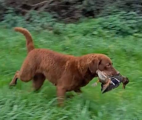 No one has been running in field trials with a Chesapeake in recent years and so it was fantastic to hear of this success. At her third trial of the season Cara competed in Wexford Retriever Gundog Club’s novice stake on driven duck at Coolattin Estate (the pheasant season is not yet open in the south of Ireland), taking home the reserve (fourth) place.