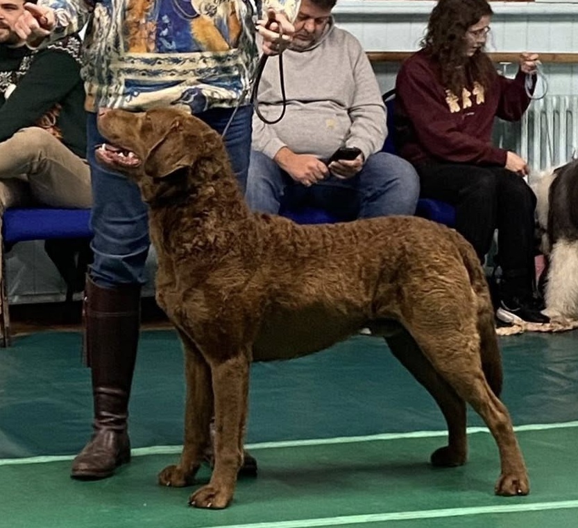 The Kennel Club breeders table is made up of dogs of different breeds showing a group of dogs from one breeder. With the reliance of those dogs’ owners to turn up and show at the major shows where the class is held, requires some planning and generosity on the part of the individual owners. I don’t think that we have ever had a group of Chesapeakes competing in the past (correct me if I am wrong), but Kirsty Watts with her Oakmarsh dogs and owners are flying in strong competition from the far more popular breeds and are currently standing in 5th place with 245 points. Well done Team Oakmarsh.