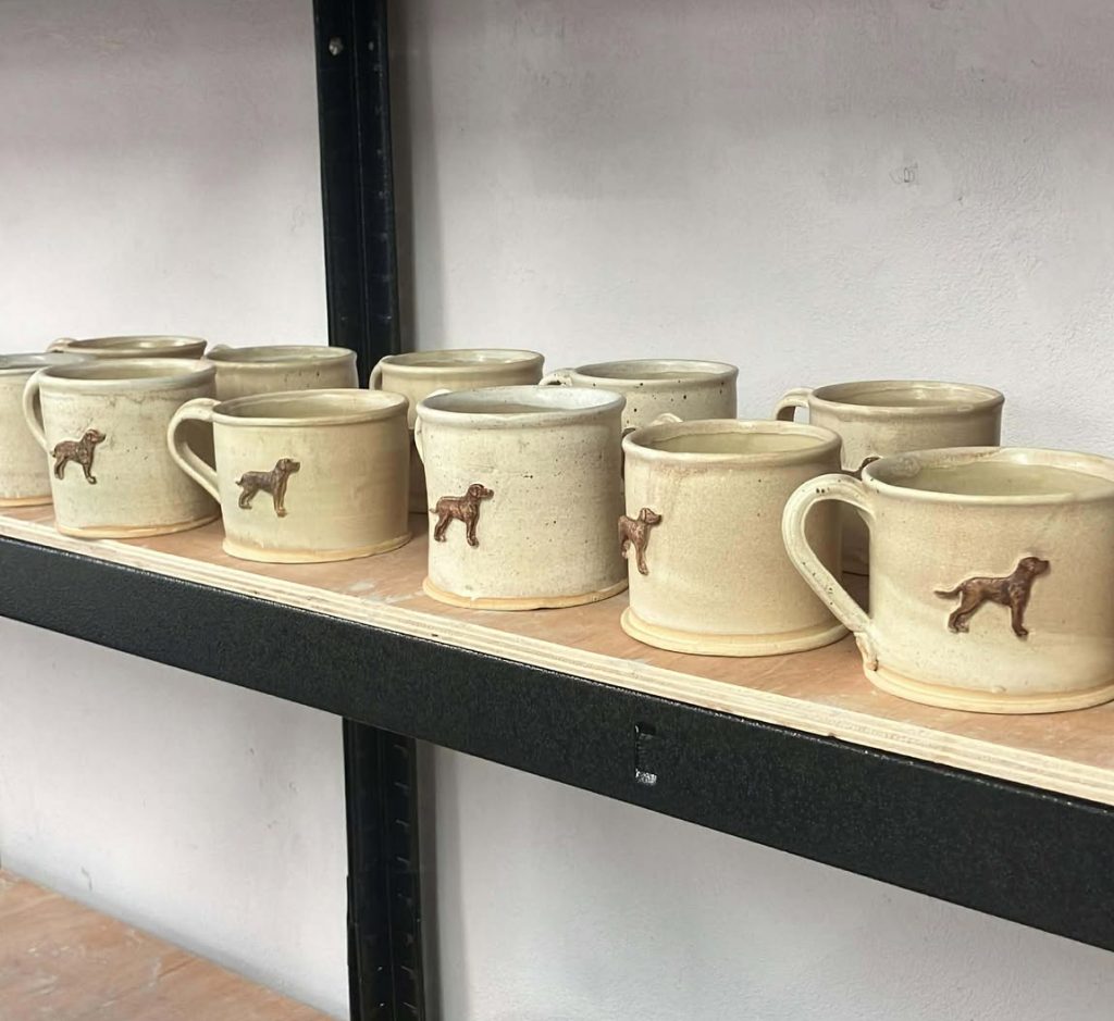Karen’s latest project has been to produce a number of unique mugs imprinted on the side with a Chesapeake in relief. The process of producing these has been challenging and the failure rate has been high. Nonetheless Karen has now donated 12 mugs to the Chesapeake Bay Retriever Club. The mugs are to be sold to members at shows and working tests to raise money for CBRC Rescue.